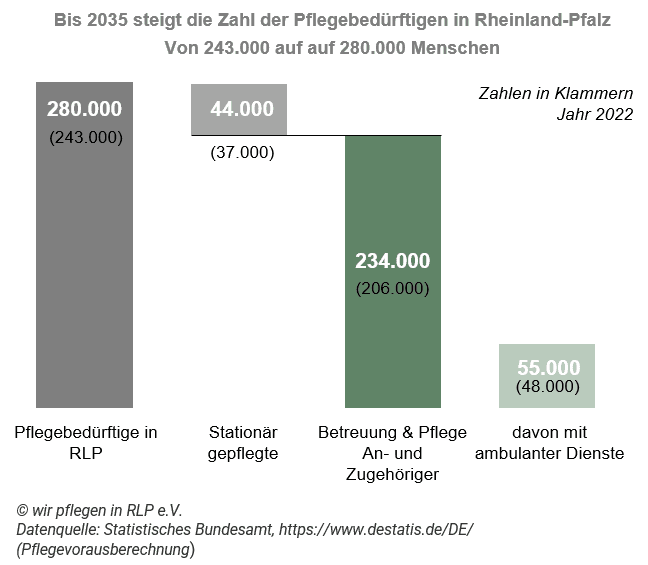 Von Betreuung und Pflege sind in Rheinland-Pfalz über 243.000 Menschen betroffen, wenn wir nur der Statistik der Pflegeversicherer vertrauen wollen. Dabei ist die Dunkelziffer weitaus höher.